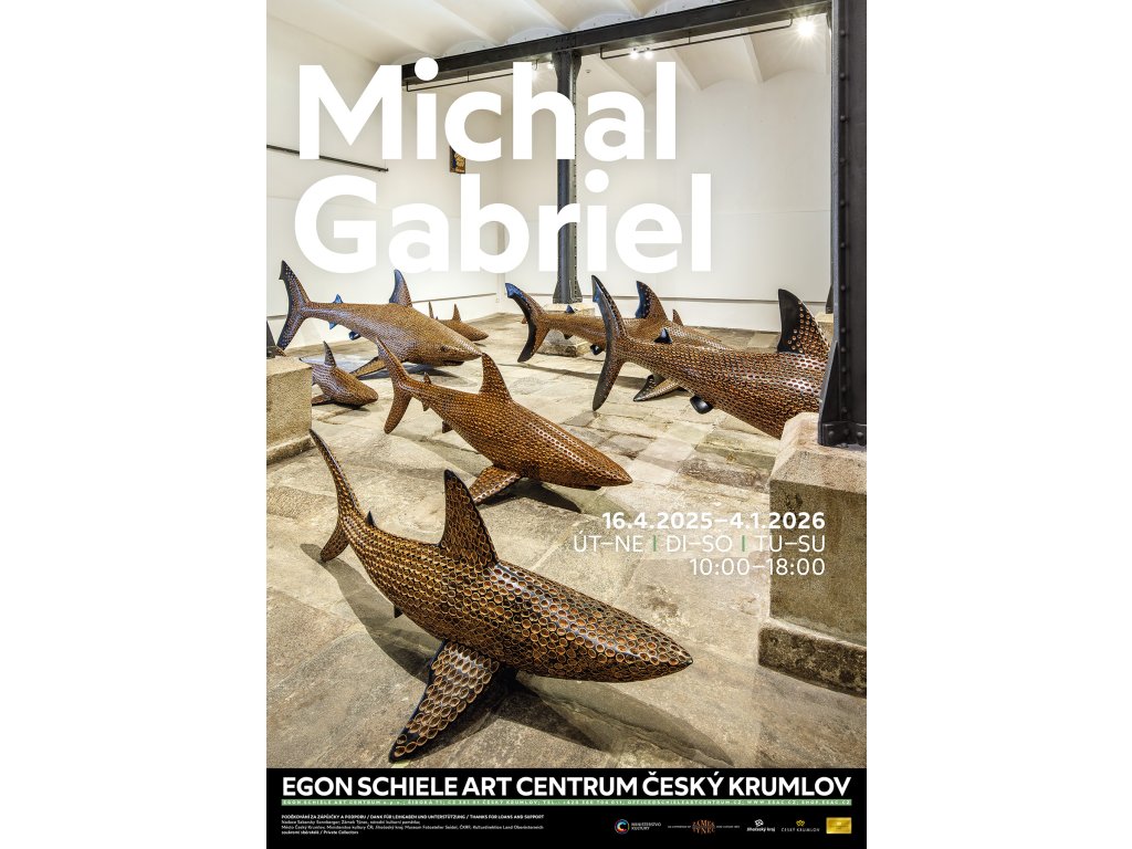 Plakát k výstavě sochaře Michala Gabriela - Žraloci: A1