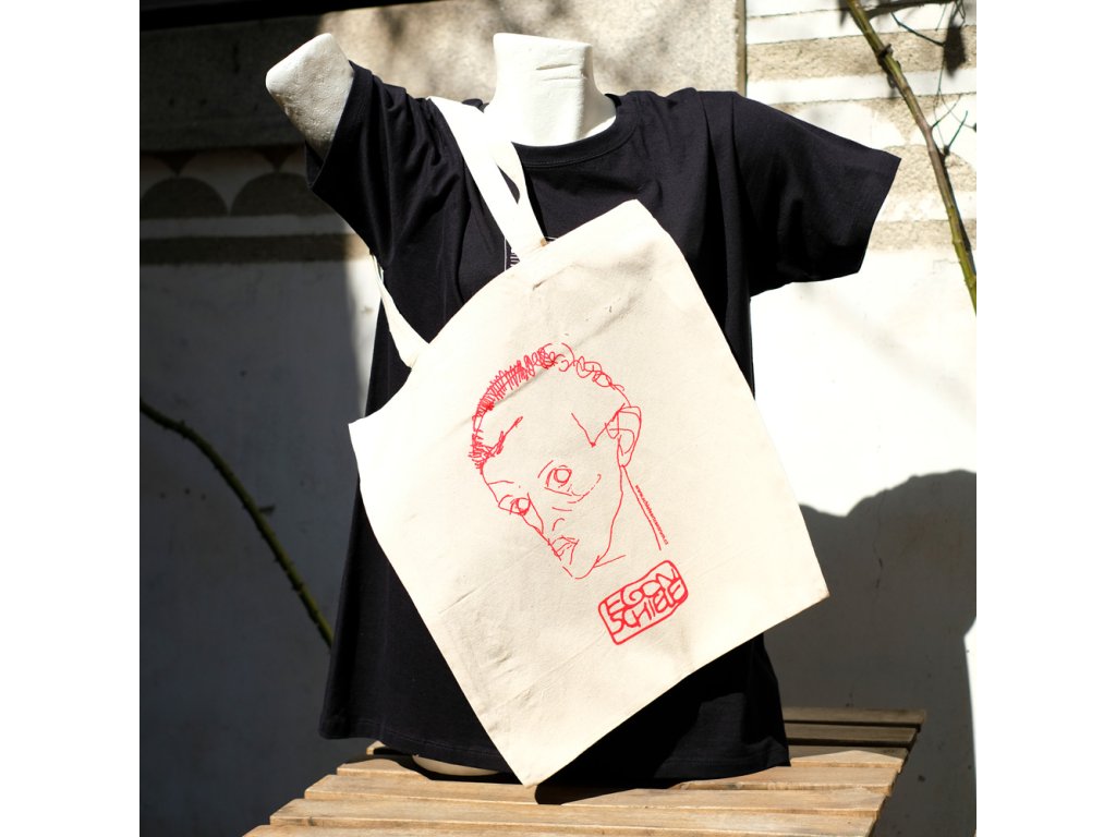 Praktická plátěná taška přes rameno s motivem autoportrétu Egona Schieleho.